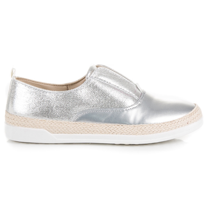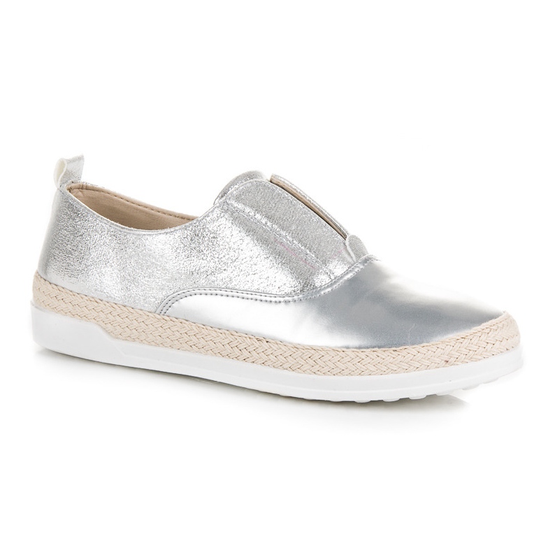 A Silver Sneakers Grey Espadrille rendkívül stílusos női lábbeli, amely minden bizonnyal felkelti a figyelmet. A kiváló minőségű bőrszerű anyagból készült divatos espadrillek egyedi fémes fényt adnak, így tökéletesek a divathoz és a hétköznapi hétköznapokhoz.