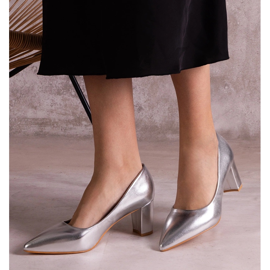 Ezüst fémszivattyúk az FB-294 postmodellen egy olyan javaslat, amely minden bizonnyal felhívja a figyelmet és pompát ad a stilizáláshoz. Kiváló minőségű ökológiai bőrből készült, ezek az elegáns cipők harmonikusan ötvözik a modern dizájnt és a klasszikus formát. Kiváló minőségű anyaguk azt jelenti, hogy nemcsak jól néznek ki, hanem kényelmet is biztosítanak a hosszú órák viseléséhez.