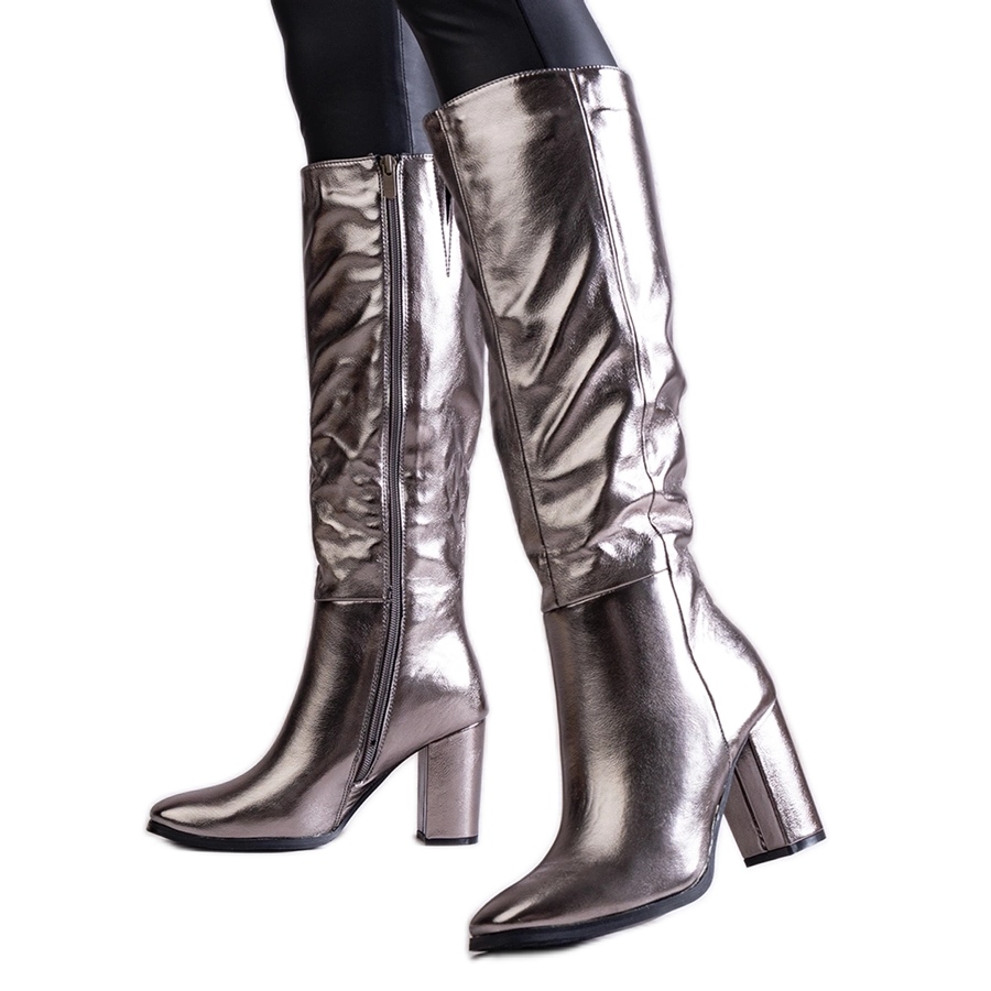 Inna marka Ezüst magas sarkú csizma Toume öko bőrből