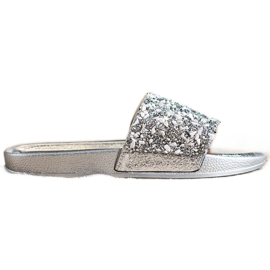 Small Swan Small Swan Ezüst papucs kristályokkal szürke