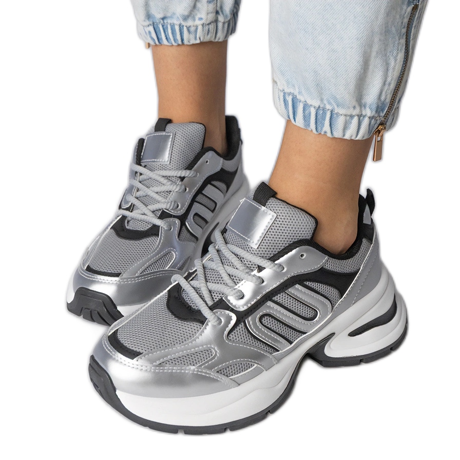 Inna marka Ezüst sport cipők egy hatalmas talpon
