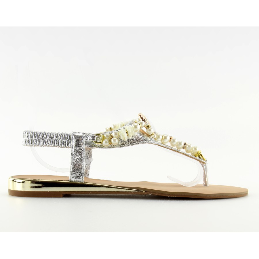 Részletek: Ezüst szandál gyöngyökkel D580 ezüst szürke