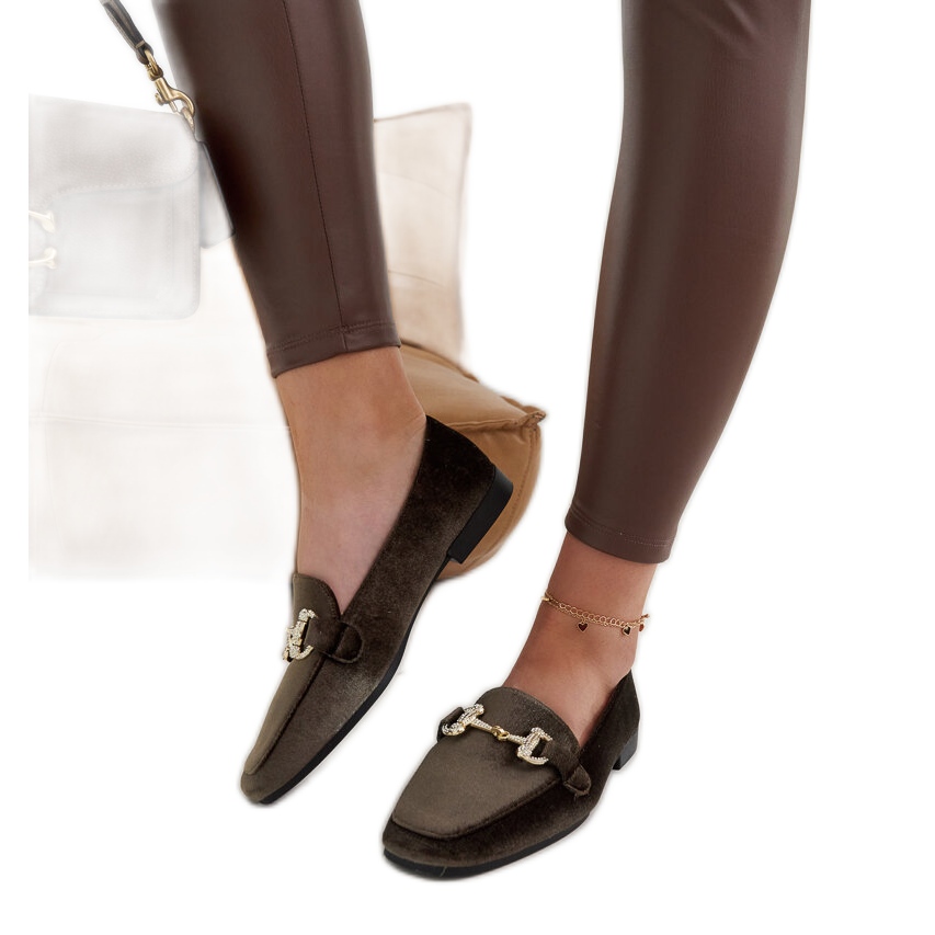 Inna marka Fabrizia zöld bársony mokaszinok strasszokkal