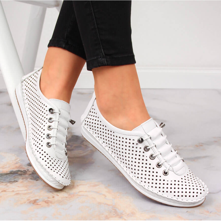 ARTIKER Fehér Artiker áttört bőr női cipő