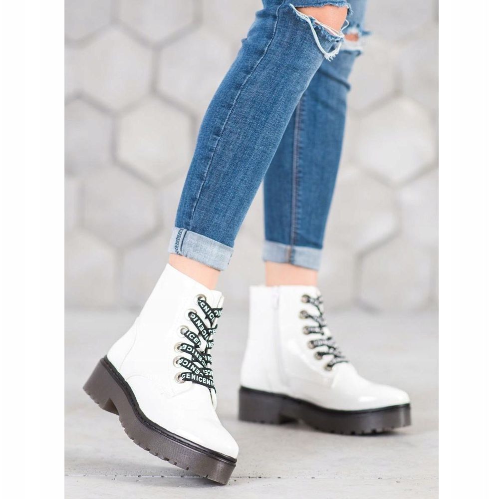 Fedezze fel az egyedi stílust a Sergio Leone női bokacsizmákkal, amelyek minden divatkollekció kötelező elemévé váltak. A bokáig érő cipő az eleganciát a kényelemmel ötvözi, amit a gondosan válogatott, lakkozott bőrszerű anyagból készült felsőrész tükröz, klasszikus fehér színben.