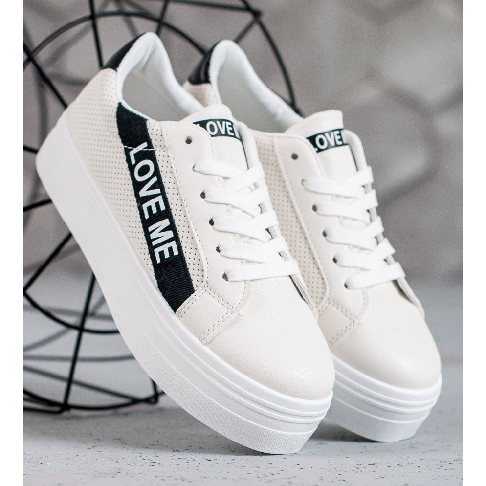 A jellegzetes "Love me" felirat a cipők oldalán felkelti a figyelmet és egyedi karaktert kölcsönöz nekik, így könnyen kitűnhetsz a tömegből. A kiváló minőségű anyagokból készült cipők, köztük a szintetikus talp és a puha sarok, ideális választás tavaszra, nyárra, őszre és télre.