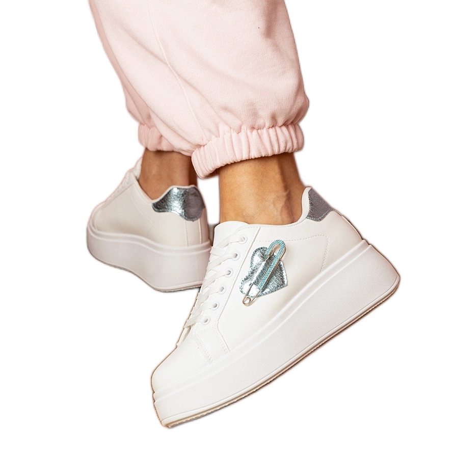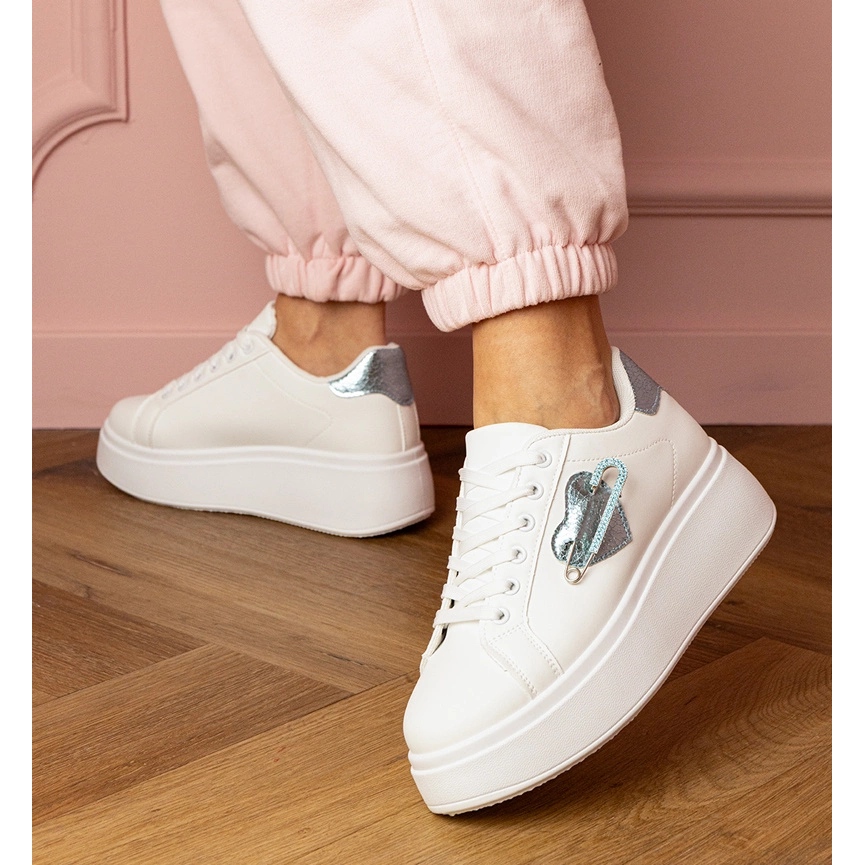 Inna marka Fehér cipők kék szívvel és cirkoncsapokkal