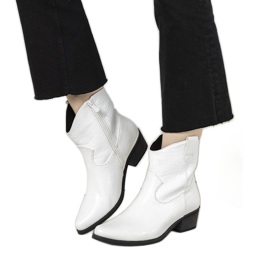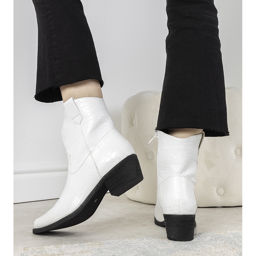 Részletek: Fehér cowboycsizma Aurore krokodilbőr mintával