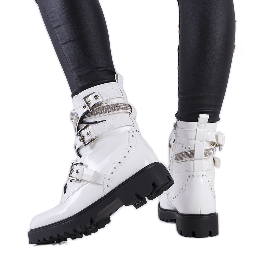 A strasszokkal díszített, fehér Tucker bokacsizma tökéletes választás azoknak a nőknek, akik divatos és kényelmes lábbelit keresnek őszre és télre. Modern kialakításuknak köszönhetően tökéletesen illeszkednek a grunge és rock stílusokba.