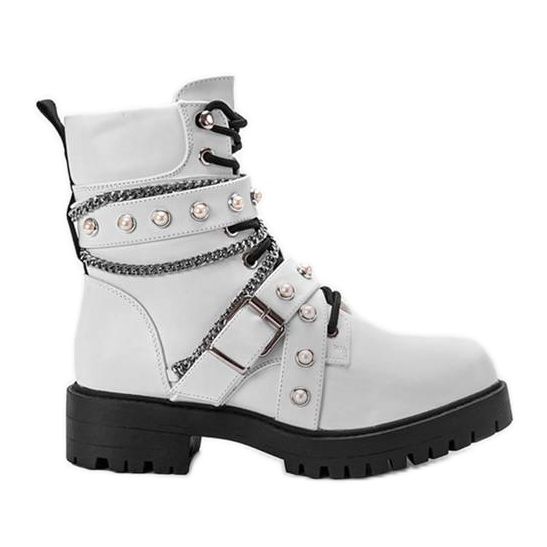 Fehér munkáscipő gyöngyökkel a Dr. A Martin kiváló választás azoknak a nőknek, akik a kényelmet a divatos stílussal szeretnék ötvözni. Ezeket a sziklacsizmákat masszív, lapos talpa és szigetelése jellemzi, ami tökéletessé teszi a hidegebb napokon. További előnye a belső cipzár, ami megkönnyíti a felhelyezést.