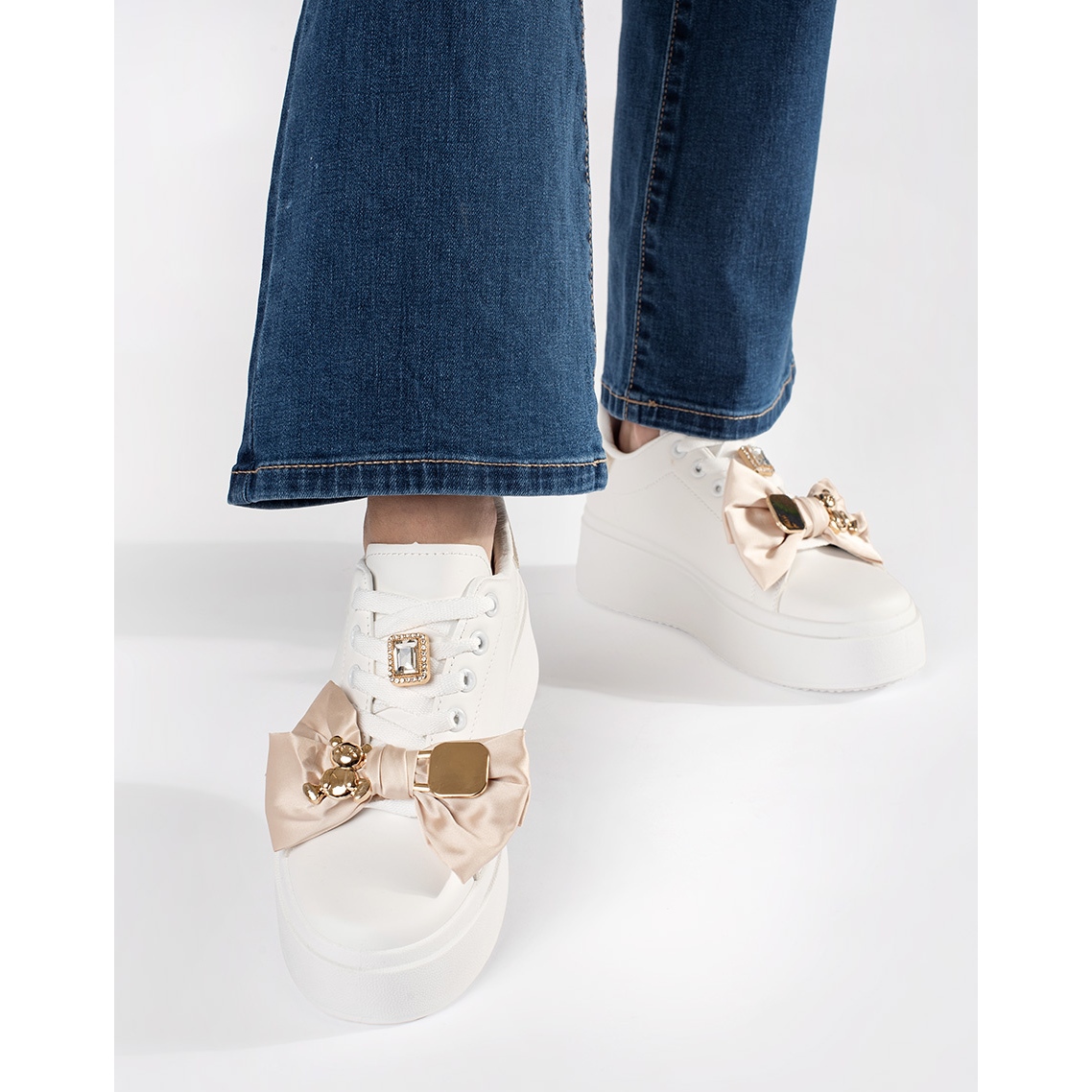 Részletek: Fehér és arany cipők arany kiegészítésekkel