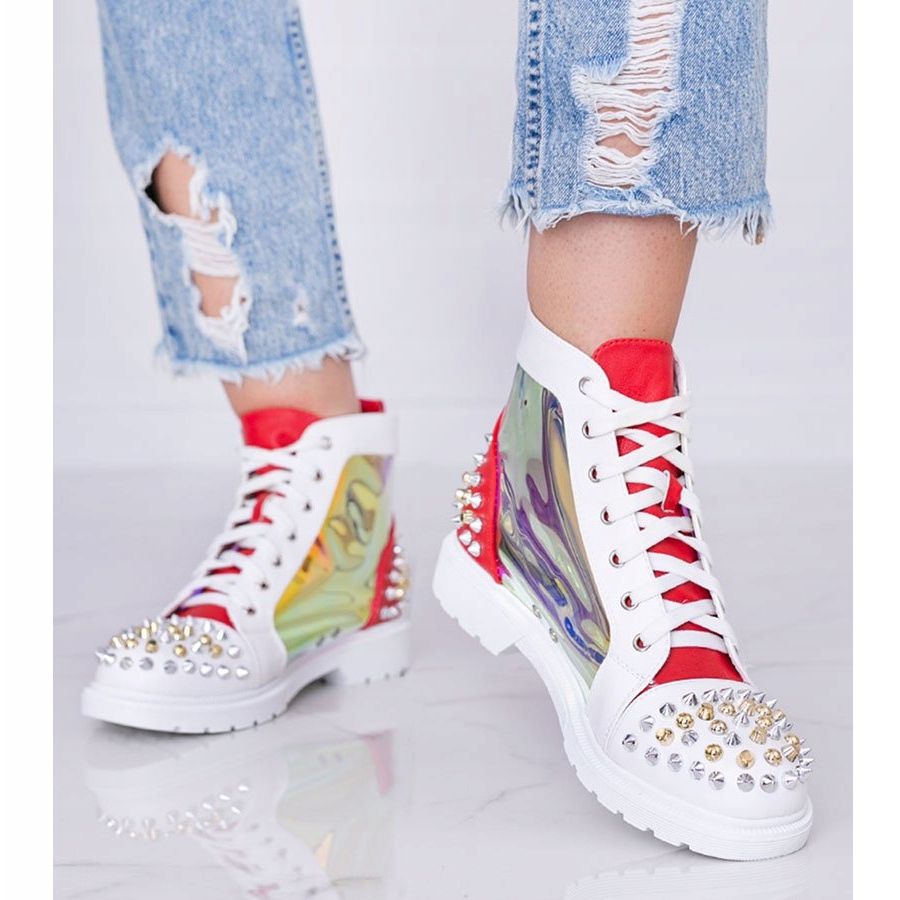 Fedezze fel az egyedi Lea csizmákat, amelyek nem csak megjelenésükkel, de kényelmével is örömet okoznak! Ezek a fehér és piros tornacipők a tökéletes választás azoknak a nőknek, akik egy kis élt szeretnének adni stílusuknak. Ökológiai bőrből készültek, és a holografikus színű részben átlátszó felsőnek köszönhetően fenomenálisan néznek ki.