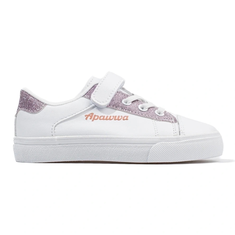 Részletek: Fehér gyerek tornacipő rózsaszín csillámmal