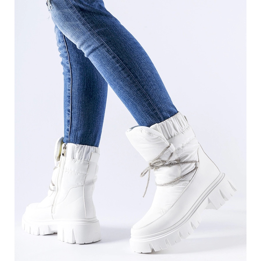 Részletek: Fehér hócsizma Pettenasco strasszokkal