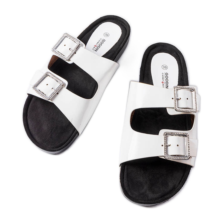 Részletek: Fehér lakkozott papucs Norcross csatokkal