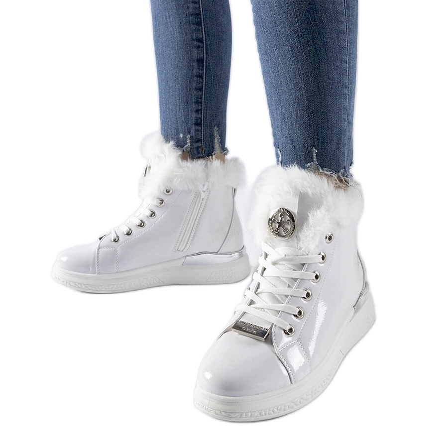 - Modell: 3007-6 fehér lakkozott tornacipő szőrmével