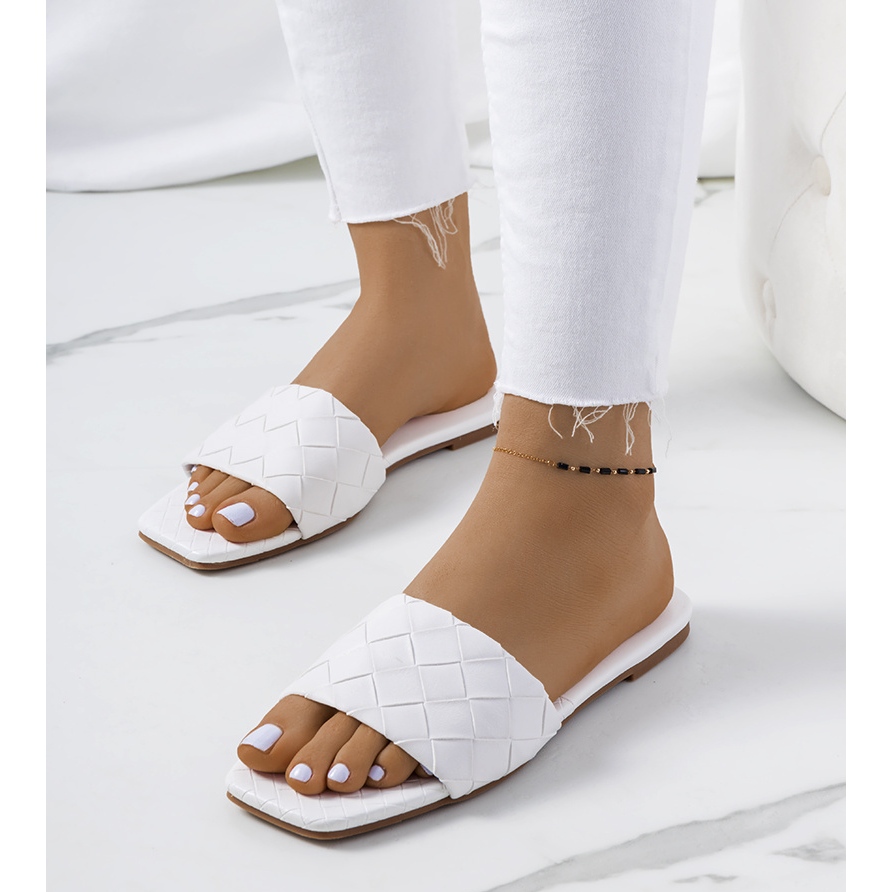 Fedezze fel a tökéletes papucsokat minden alkalomra - fehér Mabel lapos papucsokat! Ezek a stílusos és kényelmes papucsok tökéletes választás azoknak a nőknek, akik mindennap értékelik a kényelmet és az eleganciát. Kiváló minőségű ökológiai bőrből készültek, nem csak divatos megjelenést, hanem tartósságot is biztosítanak.