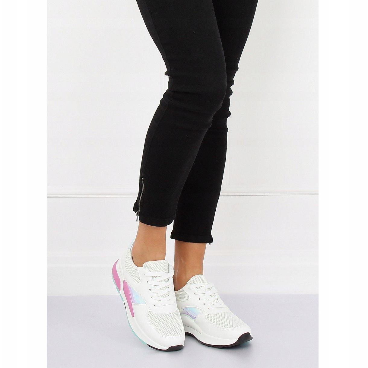 Biztosítson kényelmet és stílust minden lépésnél a szemet gyönyörködtető fehér LV73P sportcipővel. Ezek a női tornacipők a klasszikus dizájnt ötvözik a legdivatosabb kiegészítőkkel, amelyek minden bizonnyal felkeltik a figyelmet. A fényes holografikus betétek és a finoman csillogó háló minden stílusnak egyedi karaktert ad. Nem számít, mit viselsz, ezek a cipők játsszák a főszerepet!