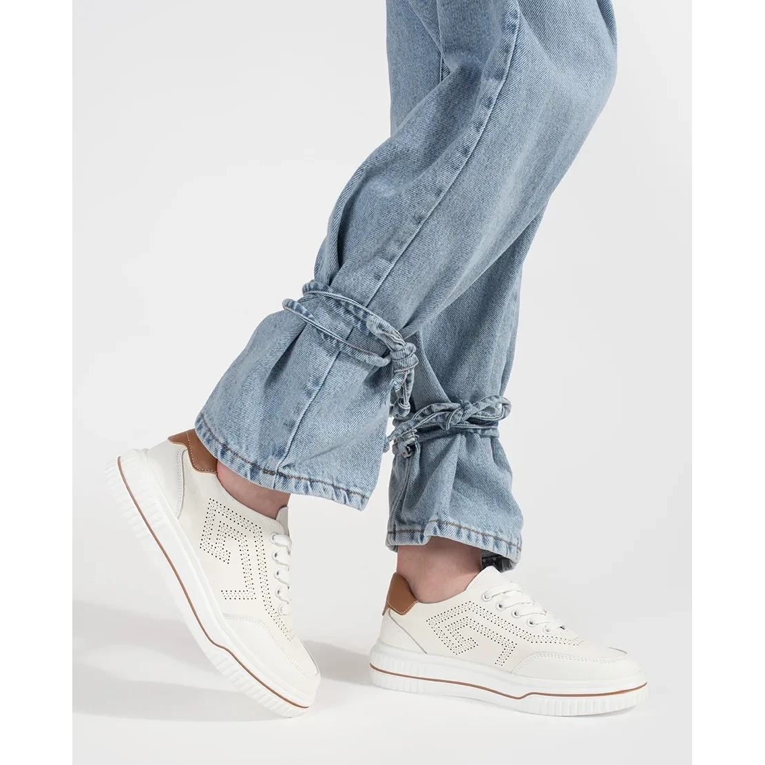 Részletek: Goodin Fehér lyukasztó bőr cipők