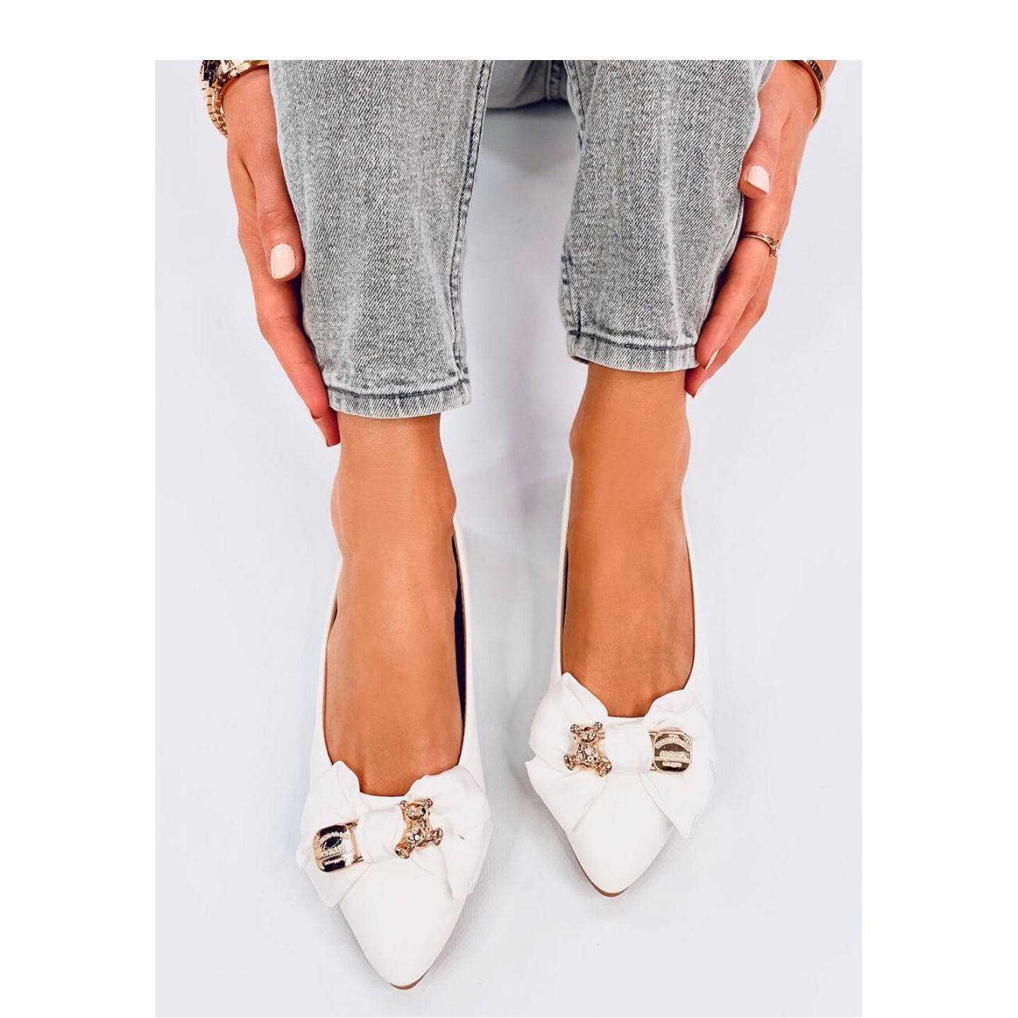 Fedezze fel a rendkívüli eleganciát és a kényelmet a fehér fehér medvével rendelkező balerinákban, ideális minden olyan nő számára, aki a stílust és a kényelmet szeretné kombinálni. Ezek a formás ballerinák örömmel örülnek a minimalista kialakításuknak, kiegészítve egy gyönyörű szatén íjjal, amelyet aranybiztonsági tűvel és egy bájos medvével díszítenek - olyan részletek, amelyek egyedi karaktert adnak nekik.