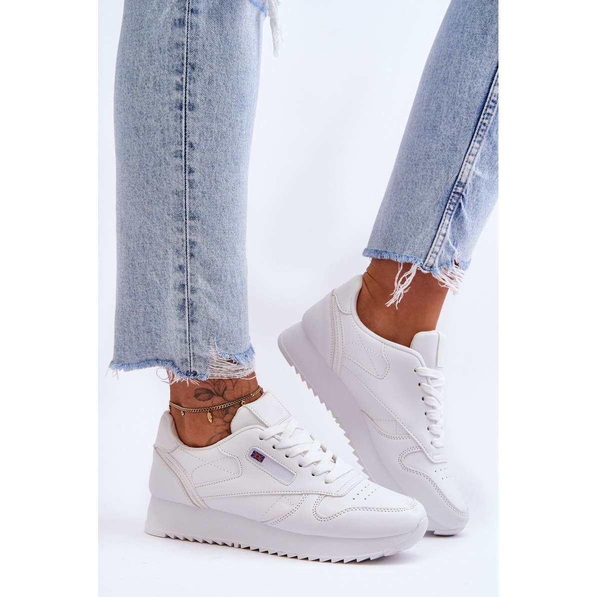 Modern, univerzális női cipők ökológiai bőrből, ideális a mindennapi stílusokhoz. A minimalista, teljesen fehér formatervezés azt jelenti, hogy a cipő megfelel mind az alkalmi készleteknek, mind a több sport megjelenésnek. A klasszikus kötés lehetővé teszi, hogy pontosan illeszkedjen a lábbelihez a láb nyújtásához, és az oldalak dekoratív útdíja finom karaktert ad.