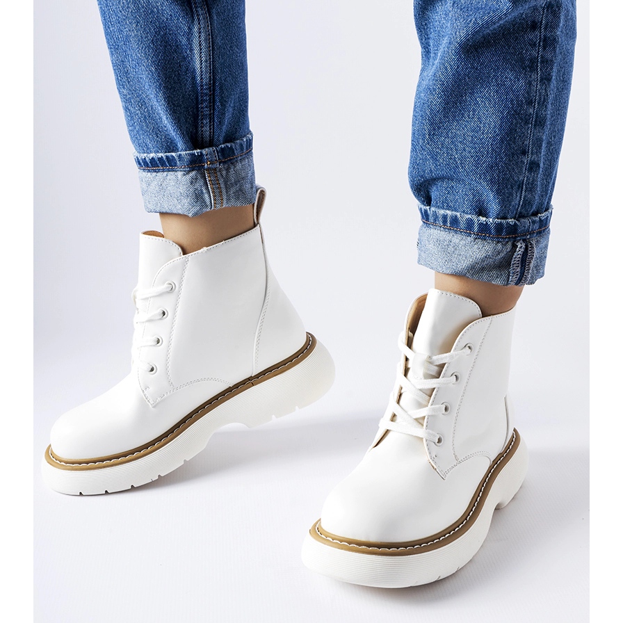 Részletek: Fehér munkáscipő vastag Sacco platformon