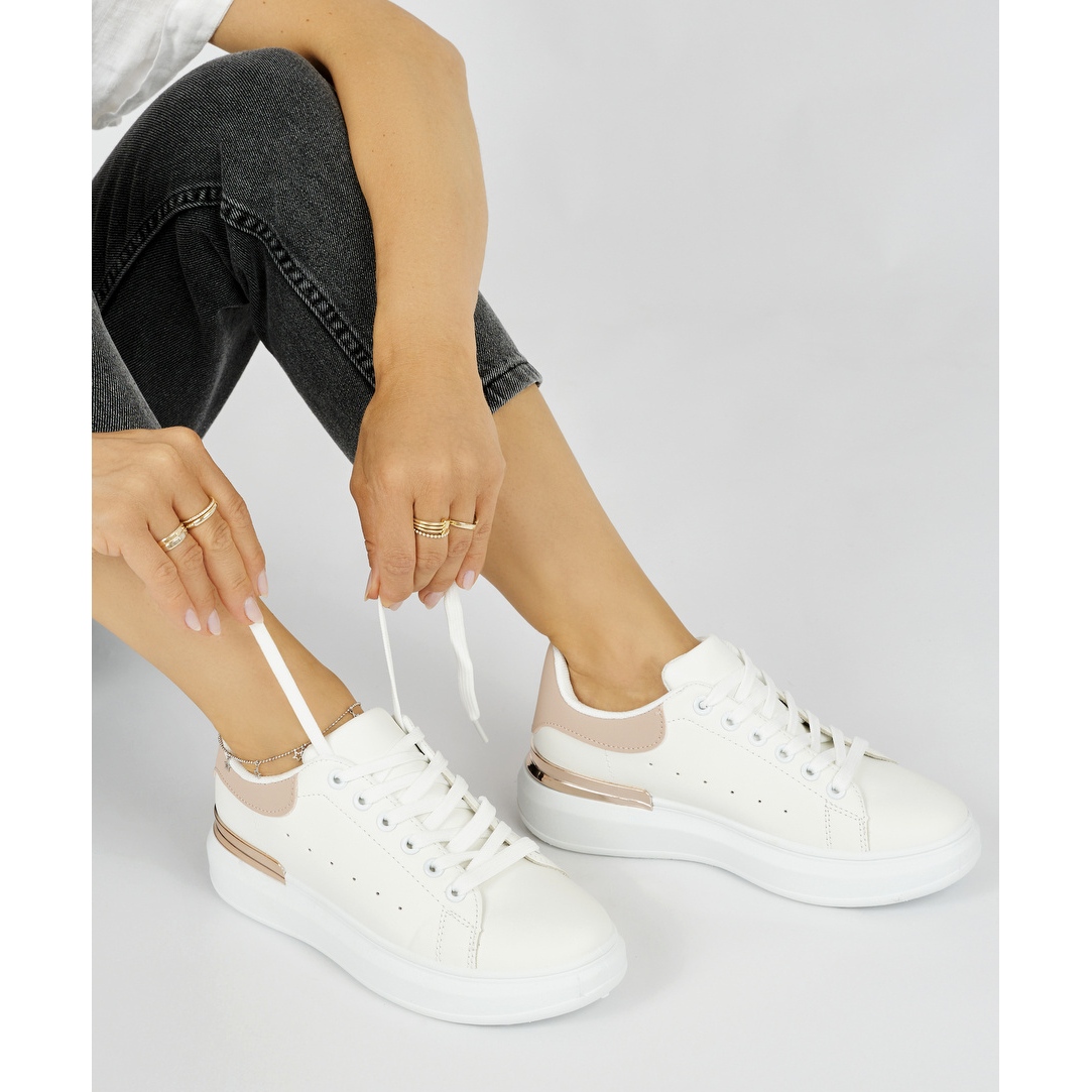 Inna marka Fehér női bőr tornacipő rózsaszín elemmel