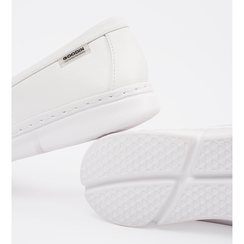 Bemutatjuk a fehér Goodin női cipőket, amelyek harmonikusan ötvözik az eleganciát a kivételes kényelemmel. Ezek a Slip -Up cipők egy egyszerű és stílusos kialakításúak, amelyek tökéletesen illeszkednek mind a mindennapi, mind a formálisabb stilizációkhoz.