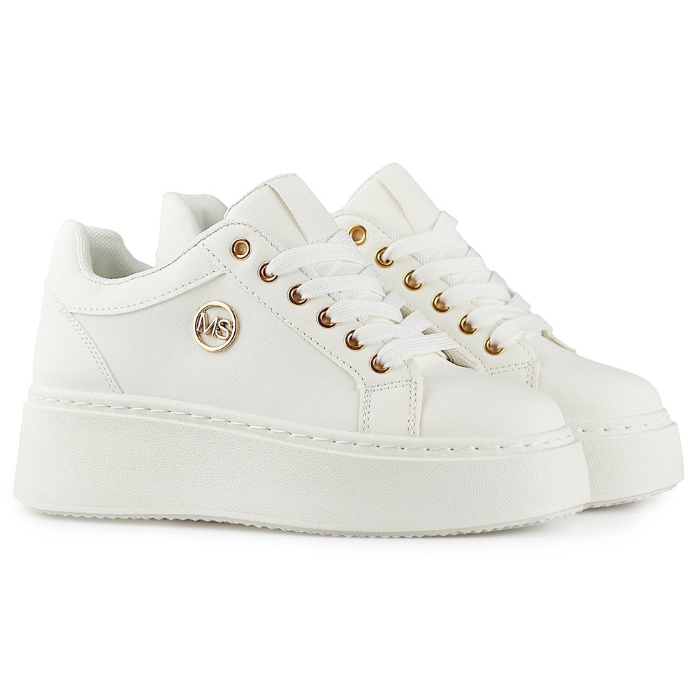 Ezeket a cipőket egy klasszikus fehér szín különbözteti meg, amely tökéletesen illeszkedik a különféle stilizációkhoz, és az arany akcentusok egyedi karaktert adnak nekik. A betét és a felső anyag anyag és ökológiai bőr, ami könnyű és kellemes viseletűvé teszi a cipőt.