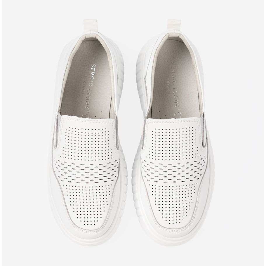 Fedezze fel az eleganciát és a kényelmet a fehér nyitott női félig, de a Sergio Leone platformon. Ezek az egyedi cipők egyesítik az időtlen alkalmi stílust a modern trendekkel, ami kiváló választássá teszi őket napi és ünnepségen.