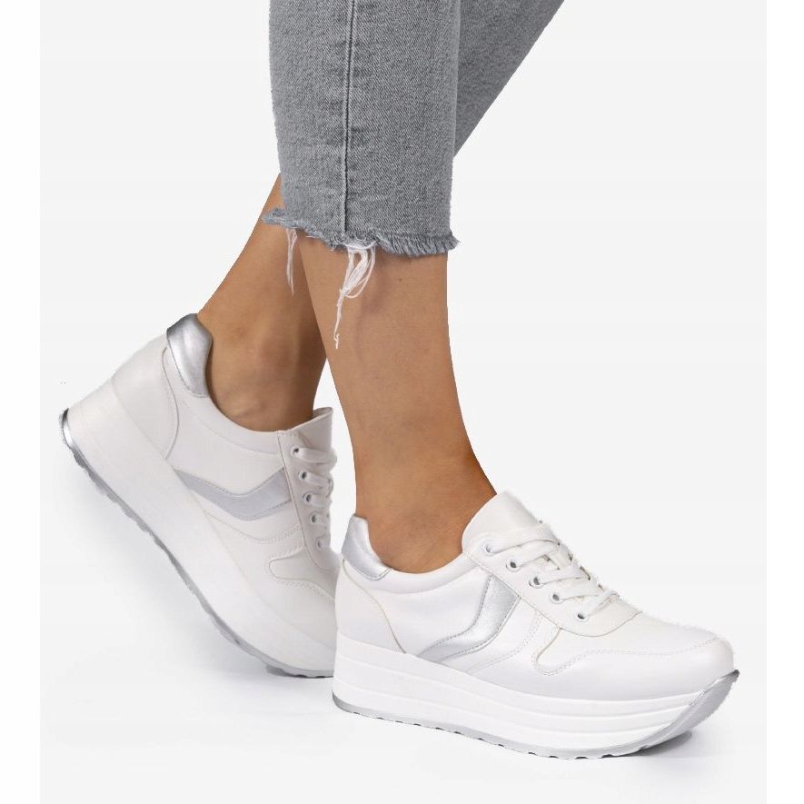 A tornacipők kiváló minőségű bőrszerű anyagból készültek, amely biztosítja a tartósságot és a könnyű karbantartást. A fehér szín finom ezüst ékezetekkel univerzálissá teszi őket, és tökéletesen illeszkednek a különféle stílusokhoz - az alkalmitól a sportosig.
