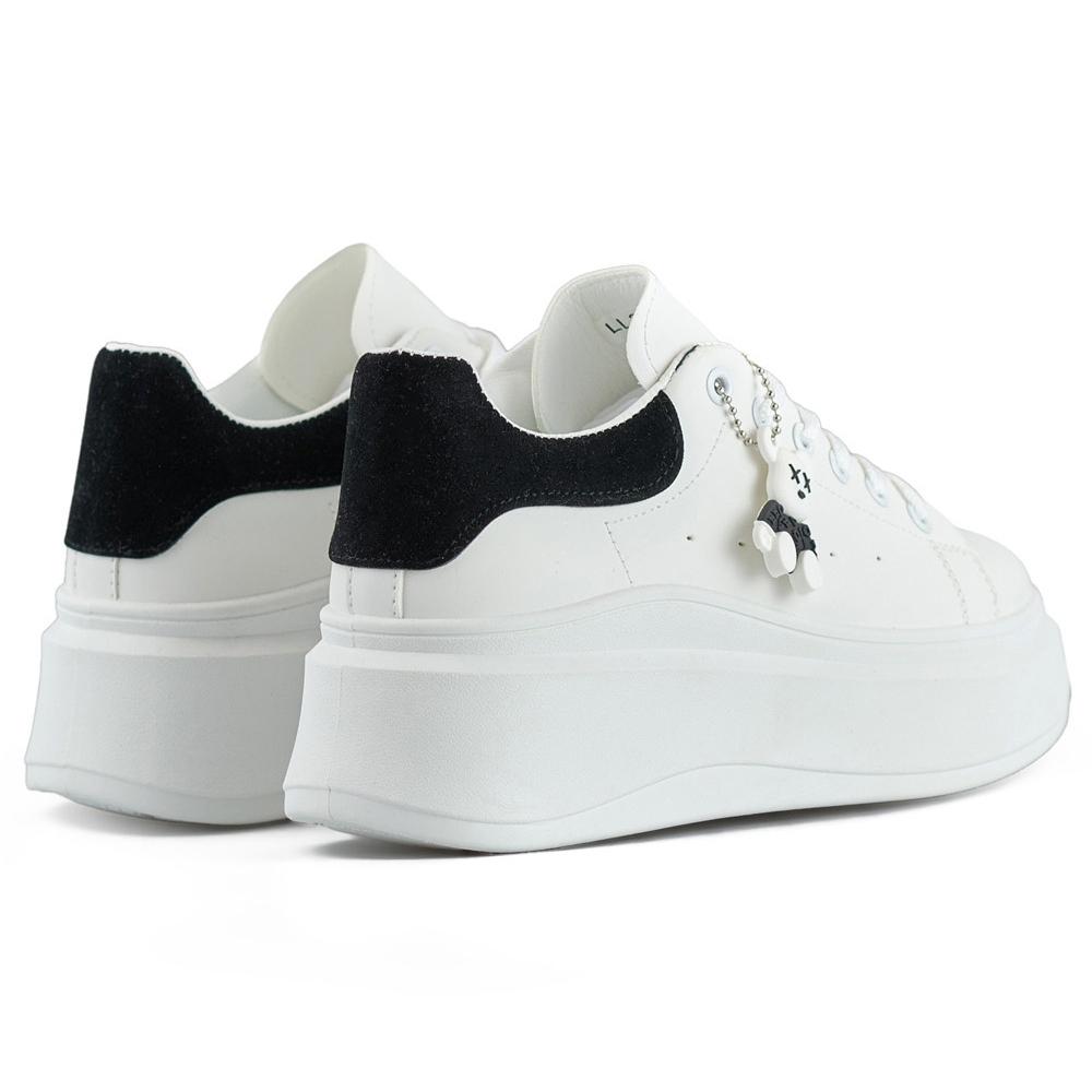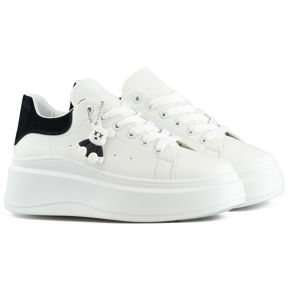 Részletek: Fehér sportcipő vastag talppal és fekete macival