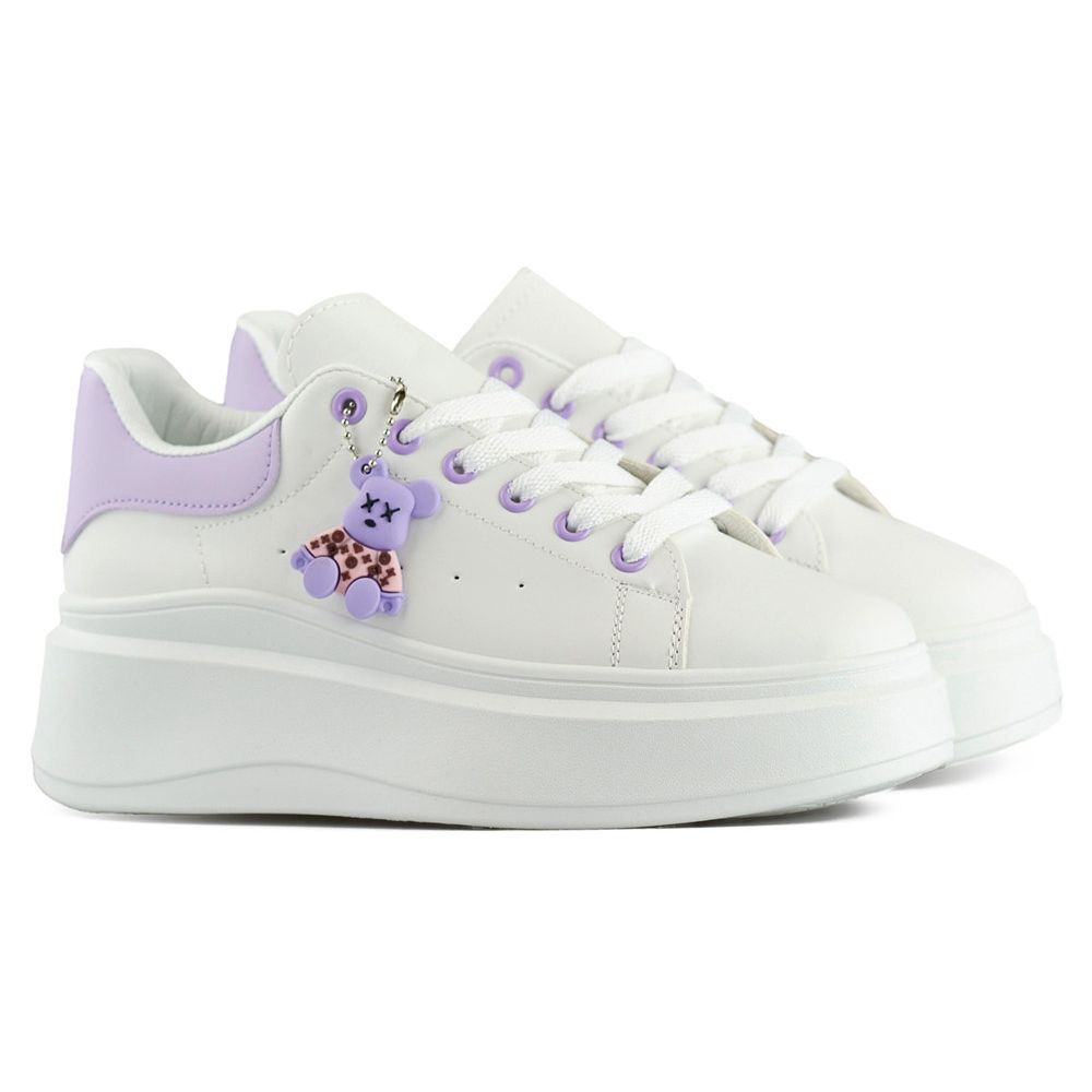 Inna marka Fehér sportcipő vastag talppal, lila macival