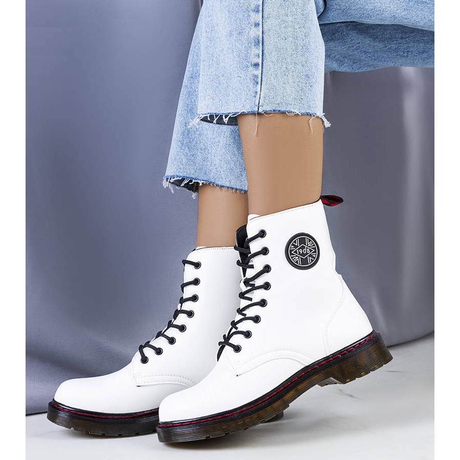 Fehér szigetelt csizma Lee Cooper LCJ-22-31-1439L-stílusú, kényelem és hő a hűvösebb napokon. A klasszikus glanák ihlette, ezek az ifjúsági csizmák egyesítik az időtlen megjelenést a gyakorlati megoldásokkal: egy öko-bőr felső, univerzális fehér színű, lágy gyapjúszigetelés és kötés, amely lehetővé teszi, hogy tökéletesen illeszkedjen a cipőhez a lábhoz. A karaktert egy félig átlátszó, tartós és rugalmas gumi talp és piros varrás adja hozzá a felső és a talp csatlakoztatásának vonalán.