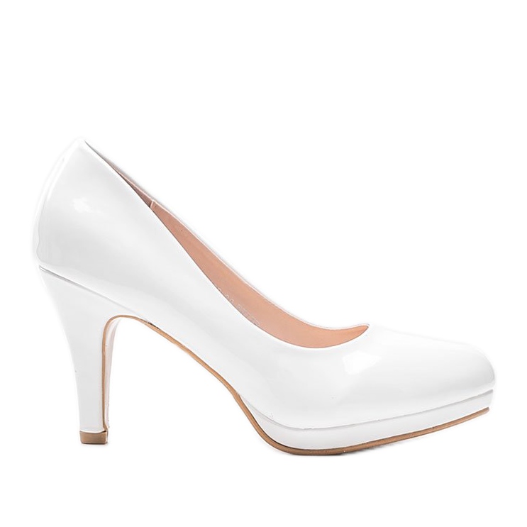 A fehér, magas sarkú Alisa pumpák tökéletes választás az eleganciát és a stílust értékelő nők számára. Lakkozott ökobőrből készült egyedi cipők a klasszikus dizájnt a modern stílussal ötvözik, így tökéletes esküvőkre és egyéb ünnepekre.