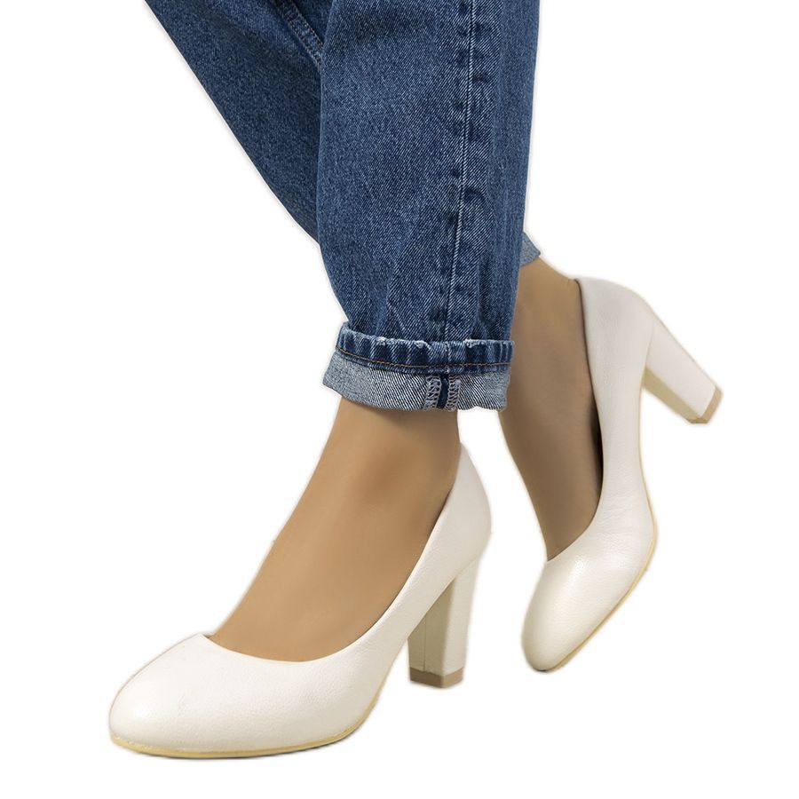 A tömb 7,5 cm-es sarokmagassága ötvözi a kényelmet és az eleganciát, így ezek a pumpák tökéletes választások különféle alkalmakra - munkától az esti kirándulásokig. A bézs színű műanyag talp tökéletesen illeszkedik a cipő világos színéhez, harmonikus egészet alkotva.