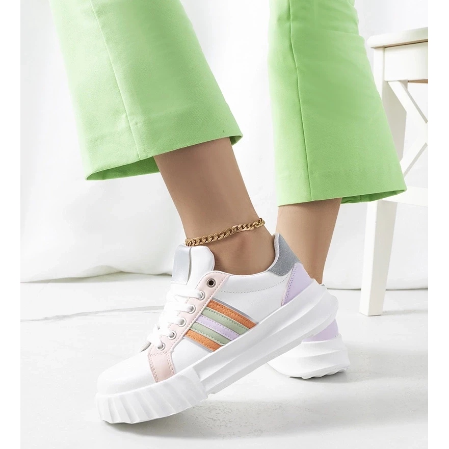 A D/GMR Prinsep platformon lévő fehér cipők tökéletes választás minden olyan nő számára, aki a kényelmet a divatos stílussal szeretné kombinálni. Ezt a modellt megkülönbözteti a felső rész klasszikus vágása, amely tökéletesen megy egy széles és magas talppal, így minden stilizáció egyedi karaktert ad.