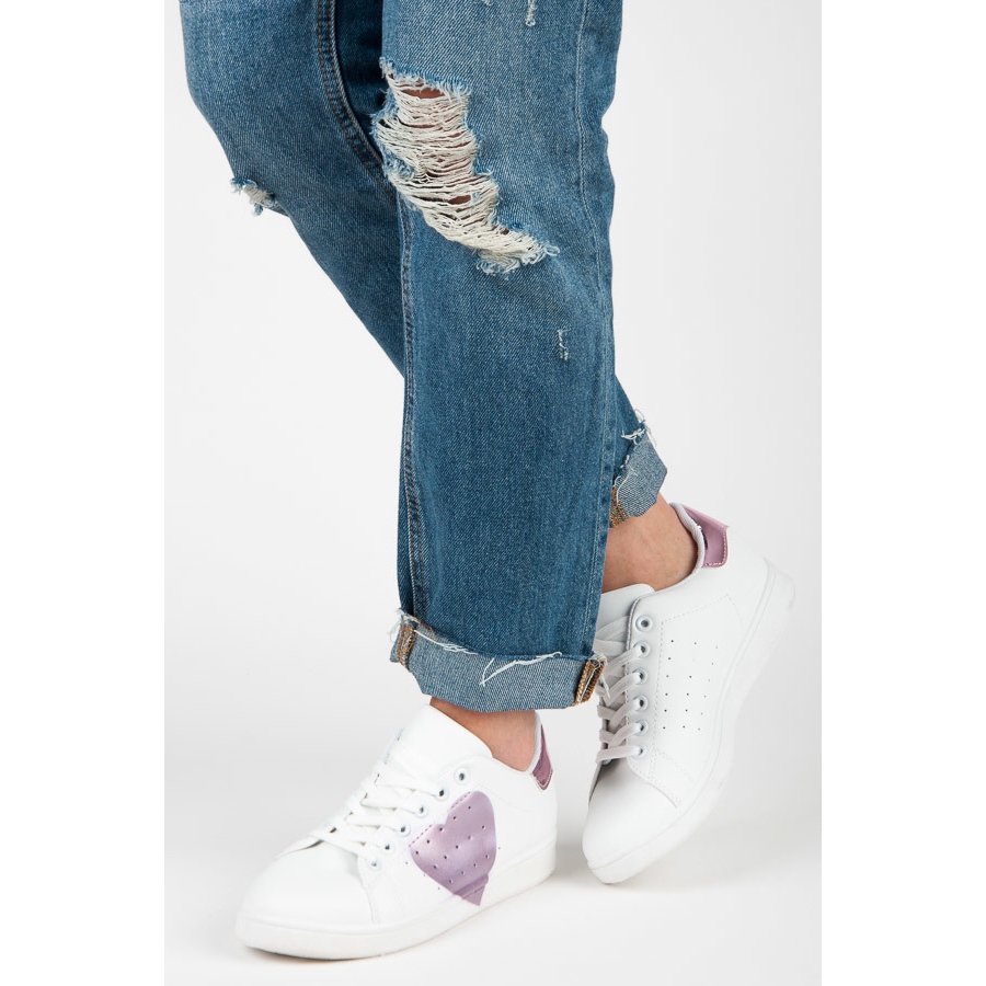 Fehér tornacipő szívvel lila
