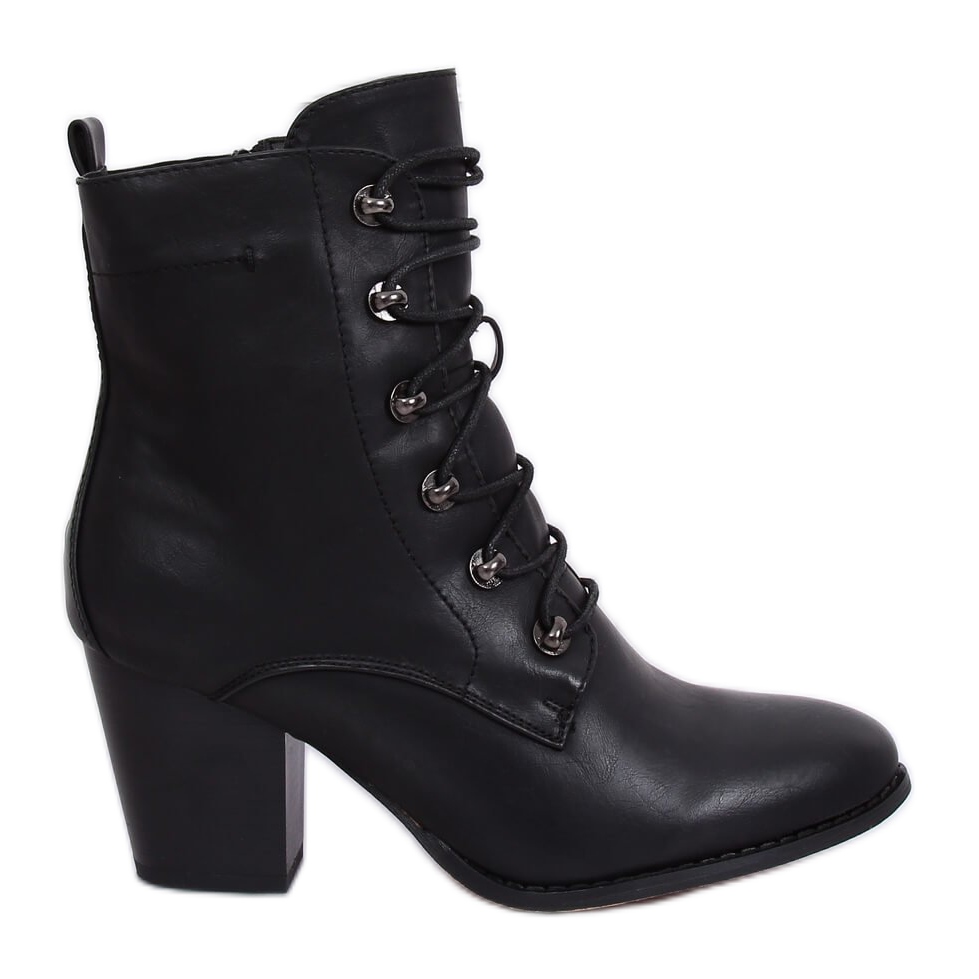Részletek: Fekete 3698 Fekete magas sarkú fűzős csizma