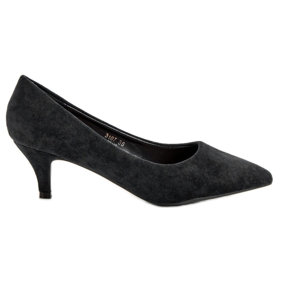 Fedezze fel az eleganciát és a kényelmet a fekete alacsony Nio Nio sarkú cipőkkel! Ezek a stílusos pumpák a tökéletes választás azoknak a nőknek, akik értékelik a klasszikus stílus és a legújabb divatirányzatok kombinációját. Ökológiai velúrbőrből készültek, rendkívül elegánsan néznek ki, hegyes lábujjaik pedig nőies bájt adnak.