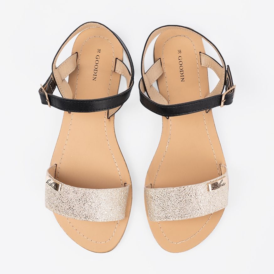 Goodin Goodin Fekete arany női lapos szandál aranysárga