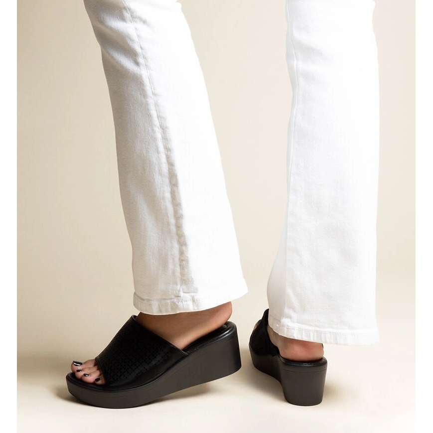 Részletek: Fekete áttört ékpapucs Garvin öko bőrből