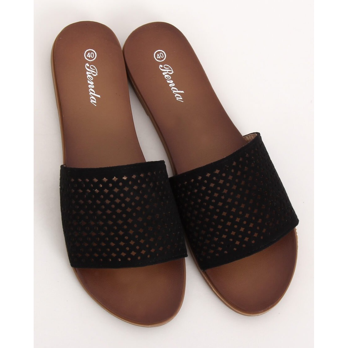 Részletek: Fekete áttört papucs 620-63 Fekete