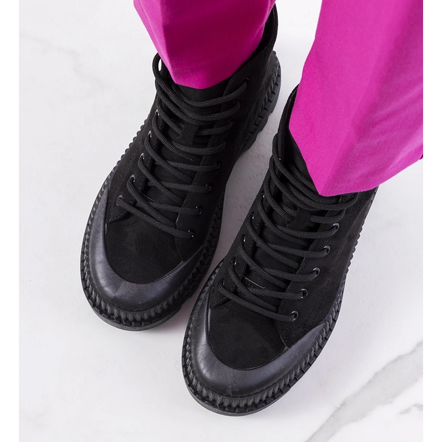 A klasszikus és kifejező Avenis cipők javaslatot jelentenek azoknak a nőknek, akik értékelik a divatos megjelenést és a kényelmet. A velúr ökológiai bőr és a magas, traktor talp kombinációja hatékony, városi karaktert ad - ideális a mindennapi és merészebb stilizációkhoz.