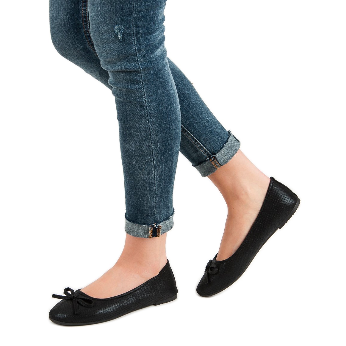 Az Evento masnival ellátott balettlakások tökéletes választás minden nő számára, aki értékeli a klasszikus és a modern stílus kombinációját. Ezek az elegáns fekete színű univerzális cipők tökéletesek a különböző stílusokhoz - divatos nadrágokhoz és csábító ruhákhoz egyaránt.