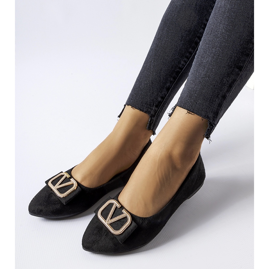 Részletek: Fekete balettlapos, dekoratív Secondo csattal