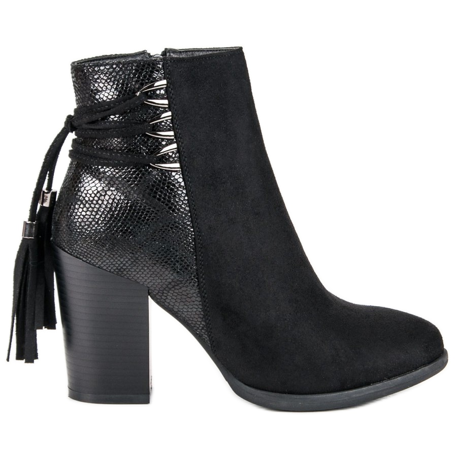 Fedezze fel az egyedi stílust Fekete Boho csizmánkkal, amely tökéletes kiegészítője lesz ruhatárának! Ez az elegáns bokacsizma, amelyet a legapróbb részletekre is odafigyelve készítettek, minden olyan nő számára ajánlott, aki a bohó stílusban szeretne kitűnni. Az egyedi állatmintával kombinált magassarkú optikailag meghosszabbítja és karcsúsítja a lábakat, eleganciát és elegánsságot kölcsönözve minden stílusnak.
