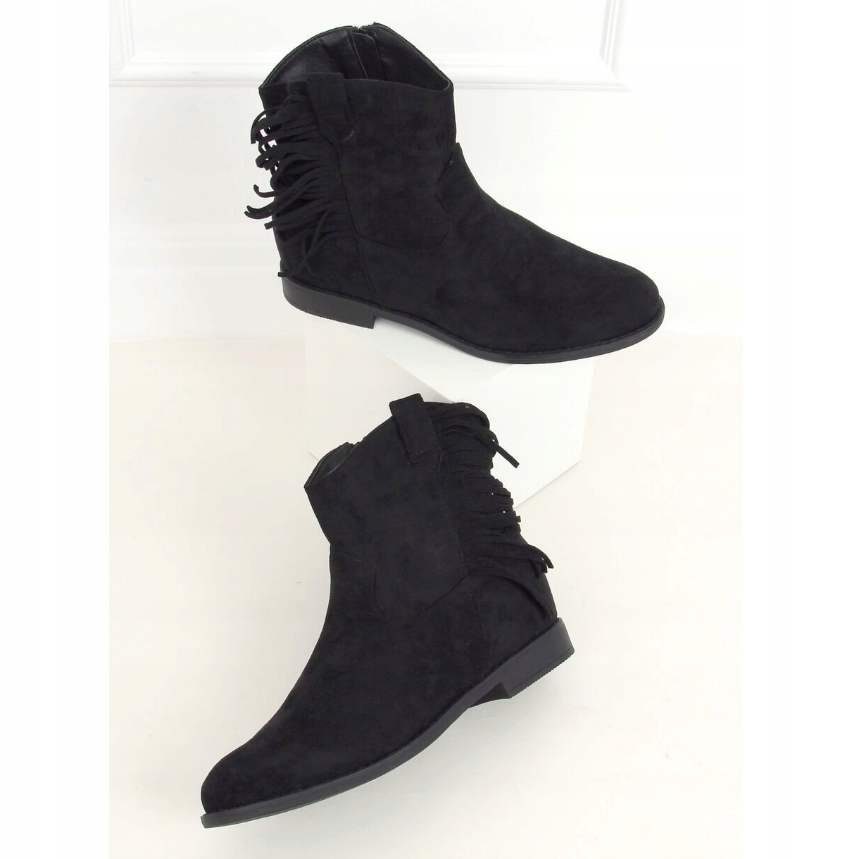 Fedezze fel bohó stílusát a 688-A99 fekete bokacsizmával, amely tökéletes kiegészítője lesz őszi ruhatárának. Ez az egyedi női csizma 6 cm magas rejtett ékkel kombinálja a kényelmet és a divatos dizájnt. Az ökológiai velúrból készült fekete felsőrész a szemet gyönyörködtető rojtoknak köszönhetően lezser karaktert kölcsönöz nekik.