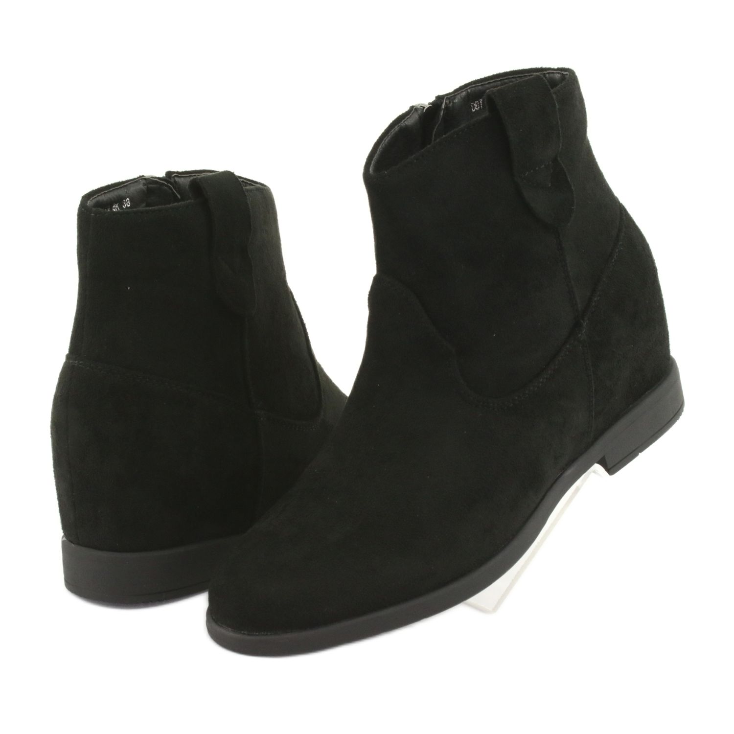 A kiváló minőségű ökológiai velúr bőrből készült csizmák rendkívül nemesen néznek ki, mélyfekete színük pedig univerzálissá teszi. A cipzáros zár nemcsak kényelmes, hanem stílusos elem is. A rejtett, 5 centiméter magas ék azonban finoman kiemeli az alakot, kényelmes és stabilitást tesz lehetővé járás közben.