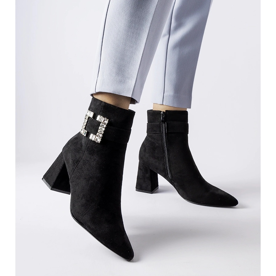 Részletek: Fekete bokacsizma Alfero strasszokkal